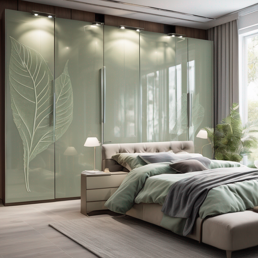Premium sandwich glass wardrobe with Botanical Harmony design. Luxury, durability, and customizable sizes for your modern bedroom.