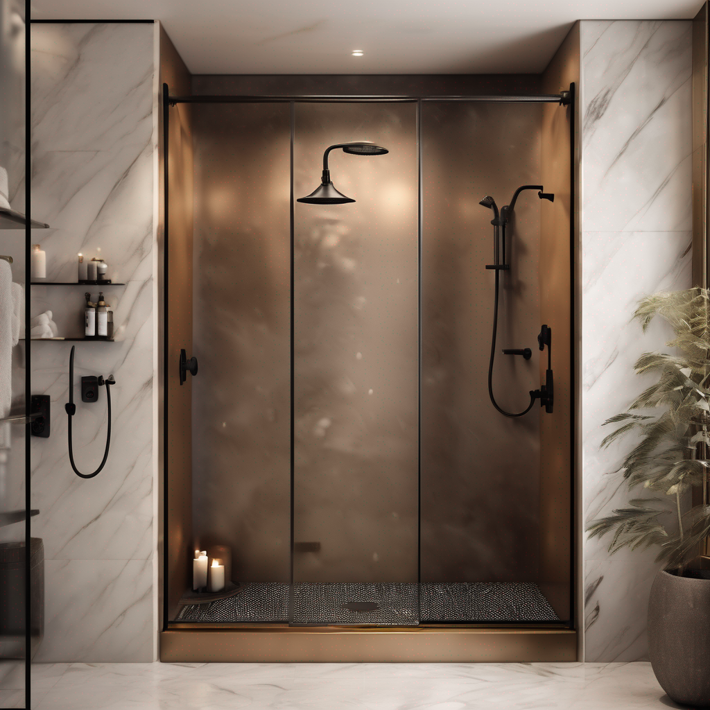 Bronze Glow Shower Enclosure Glass – Black Hardware