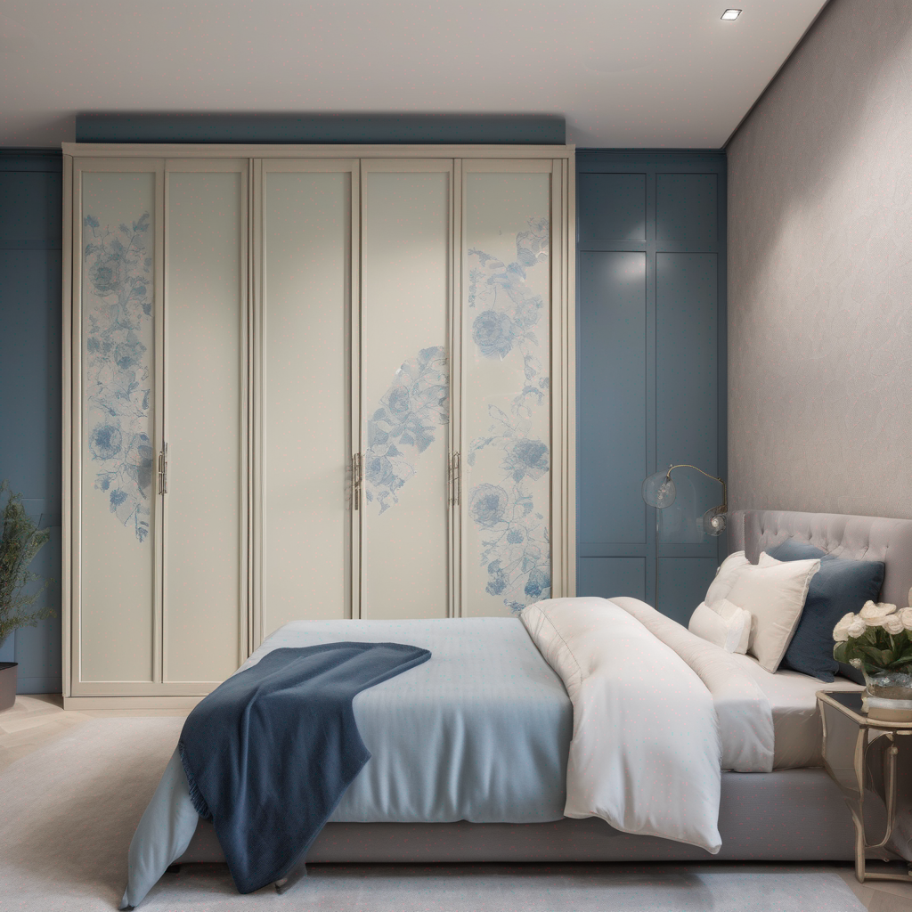 The ‘Vintage Serenity’ wardrobe features premium sandwich glass panels designed for luxury bedrooms. Its elegant design enhances any modern home with custom glass artistry, ensuring durability and aesthetic appeal for wardrobes. Ideal for contemporary interiors seeking sophistication and uniqueness.